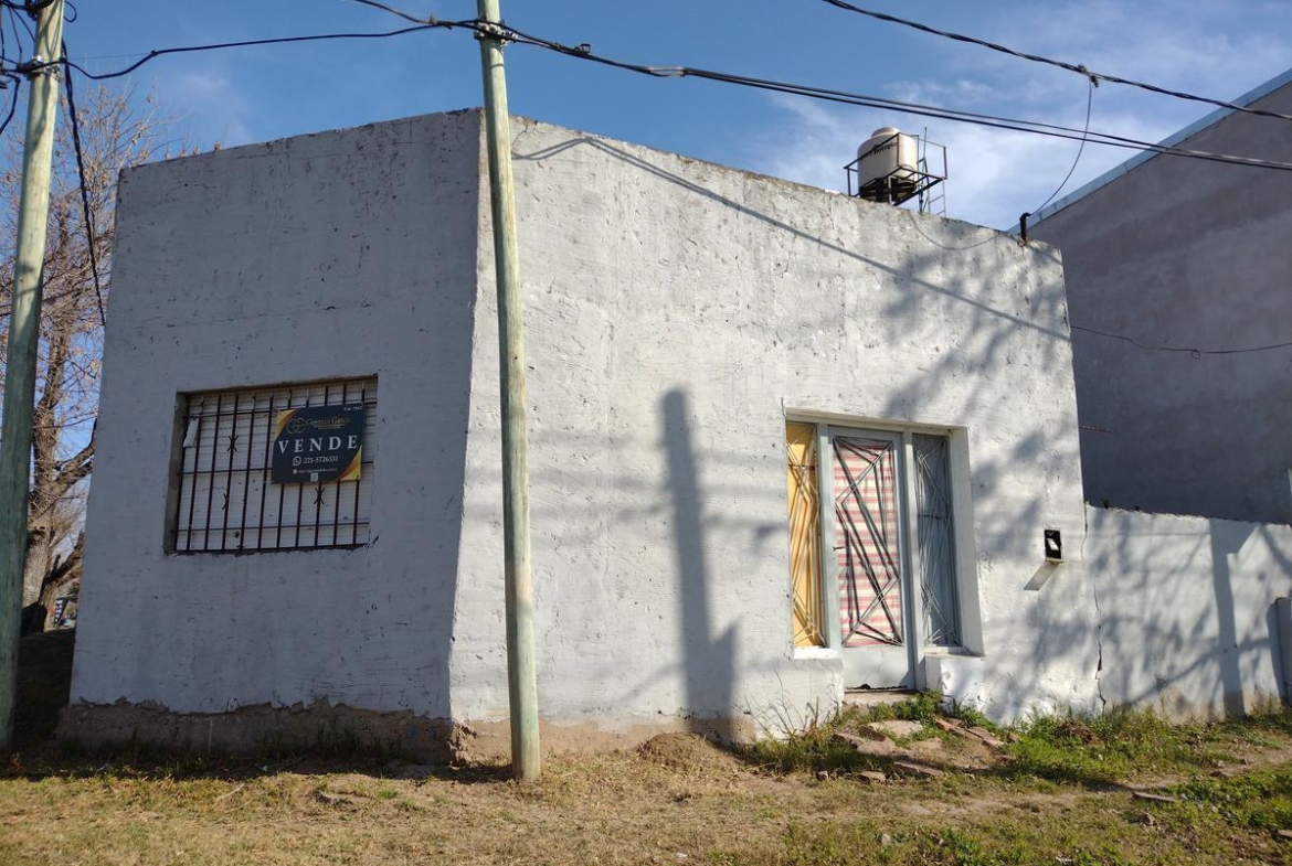 Casa a TERMINAR de 52 m² cubierto, ubicada en la esquina sobre lote 10 x 20 m, con posibilidad de entrada de auto, falta terminaciones de revestimiento cocina, baño y pisos. Consta de 2 dormitorios, estar/comedor con cocina incorporada, fondo.