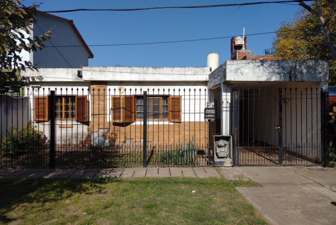 Casa Barrio ATEPAM que consta jardín al frente con chochera semicubierta, cuenta con doble acceso principal hacia el living y el otro de servicio a la galeria, living, cocina/comedor, lavadero, baño, 2 dormitorios, amplia galería con puertas balcones de aluminio que dan al jardín, parilla y galpón.